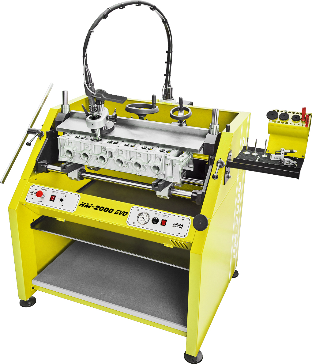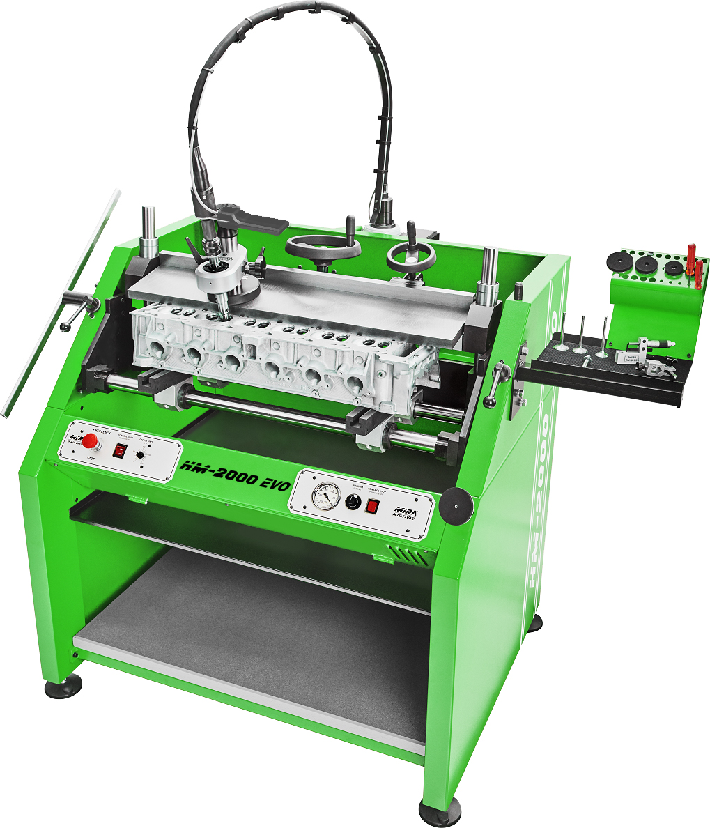 The HMX-2000 EVO is a versatile complete and sturdy working center which satisfies highest requirements for professional engine rebuilders . Almost any kind of cylinderheads in weight of 120 kg and 800mm in weight can be quickly fixed into place by means of a universal quick-locking fixture.